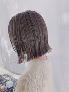 ブリーチハイライトが入ったベースにアッシュベージュを