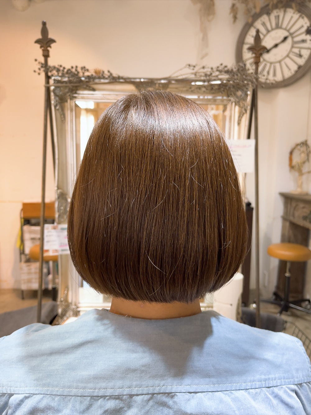 アイロンでツヤを出した後オイルをつけるだけでスタイリングが完成します♪