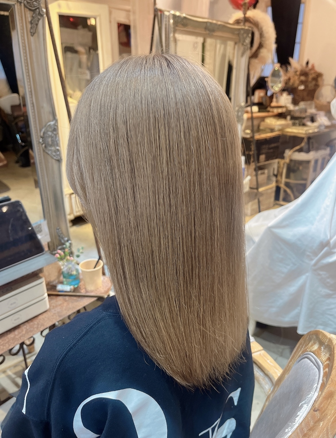 少しミルクティーっぽくなるようにくすませたブロンドカラーです♪