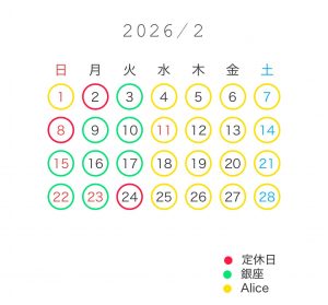 Alice音羽【2/15(日)〜3/1(火)予約状況】