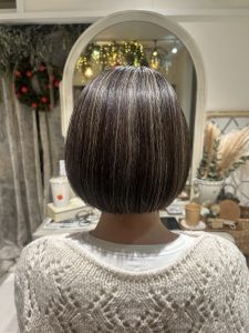 できるだけ明るめのハイライトを細かくいれて白髪となじむようにしました♪